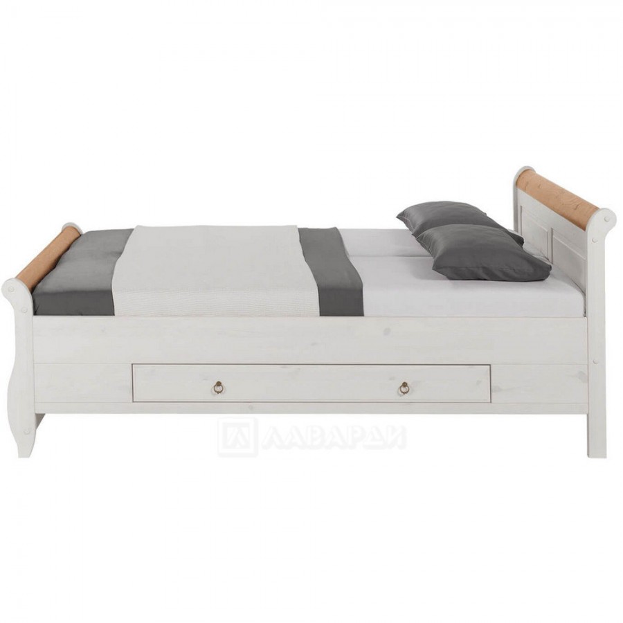 Настилы для матраса приобретаются опционально.Под спальным местом с каждой из сторон расположено по одному выдвижному ящику.Коллекция мебели "Мальта & Хельсинки" является образцом классического стиля. Натуральная мебель изготавливается из массива дерева и покрывается белой экологически чистой краской на водной основе, комплектуется фурнитурой немецкого производителя "Hafele". Для производства экологически чистой мебели используется дерево, поставляемое из Минской и Витебской областей. Мебель серии "Мальта & Хельсинки" покрыта белым воском с малой укрывистостью, что делает мебель менее тонированной и придаёт изделиям лёгкий кремовый оттенок, который заметен только если поставить данную мебель рядом с мебелью, покрытой белым воском либо укрывистым белым воском. Коллекция "Мальта & Хельсинки" включает в себя шкафы, кровати, тумбы, комоды, стол, зеркало, прекрасно сочетается с коллекцией Хельсинки Бейби.