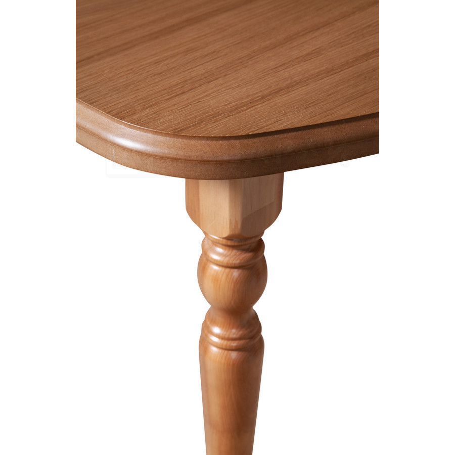 Ноги стола изготовлены из массива дерева. Столешница - МДФ, покрытая шпоном дуба по верхней плоскости.
