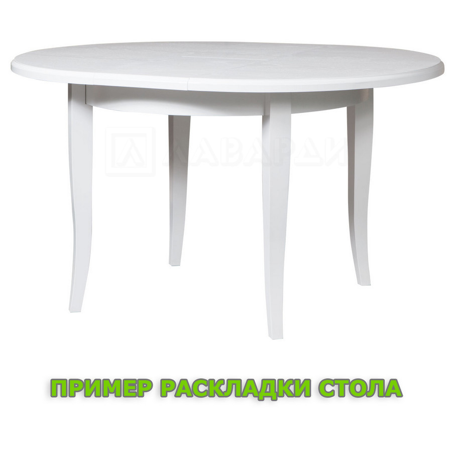 Механизм трансформации столешницы - синхронный, механизм трансформации вставки -тип «Бабочка». Вставка состоит из 2х частей на петлях. Складывает пополам в нишу под столом, где и хранится.