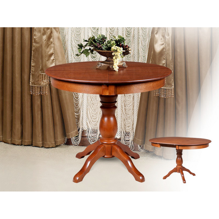 Круглый раздвижной стол из массива. Отличное решение для столовых и гостиных. Для создания защитно-декоративного покрытия применяется лакокрасочная продукция итальянских и немецких производителей. Раздвижная система укомплектована импортной фурнитурой.
